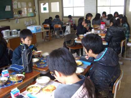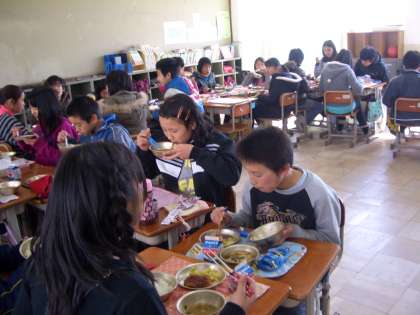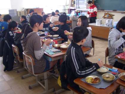 6年生は給食を毎日よく食べています。今日は卒業祝献立でトンカツです。感謝の気持ちでおいしくいただきましょう。