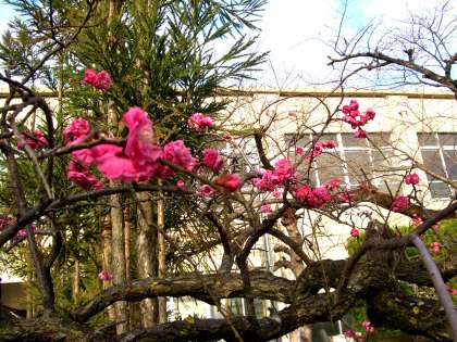 花数は少ないのですが,紅梅が満開に近くなってきています。