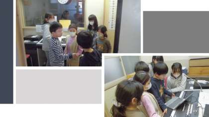 情報発信局という委員会の活動で、「放送体験会」があり、学年から4人の子どもたちが参加しました。初めての体験にドキドキしながらも、しっかりと放送することができました。教室に戻ると、みんなから拍手やねぎらいの言葉が飛び交いました。