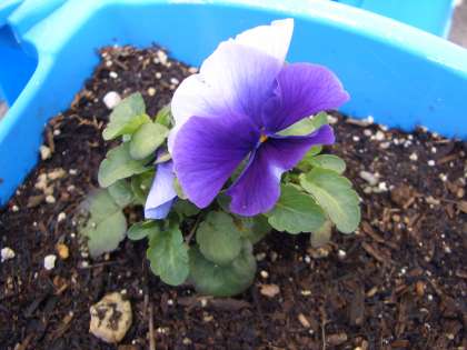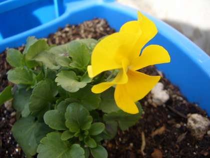 種からそ出てたパンジーが咲き始めました。卒業式には間に合わなかったけど,入学式には彩りを添えてくれることでしょう。