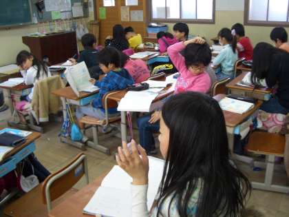 明日は卒業式,明後日は修了式,授業も今日が最後になりそうです。4年生に向かって,今日も算数のまとめをがんばっています。