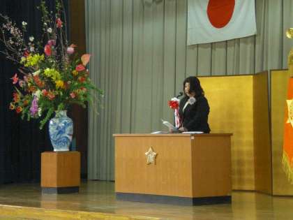 引き続き学校長式辞と来賓祝辞がありました。小学校で学んだことを生かして,これからもしっかり前を向いて人生を歩んで下さいという温かい言葉をいただきました。