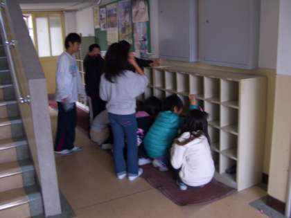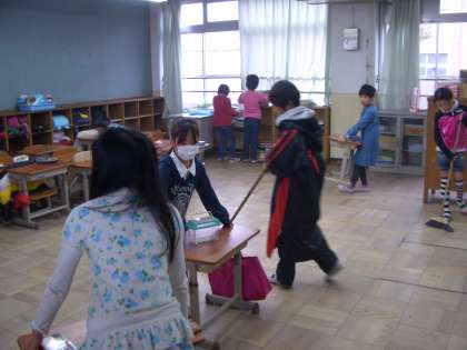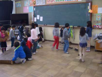 来年度の新し学年の人たちのために,また,自分たちを成長させてくれたお礼もこめて教室やげた箱をきれいにしています。いろんな成長を支えてくれた教室,思い出がいっぱいですね。