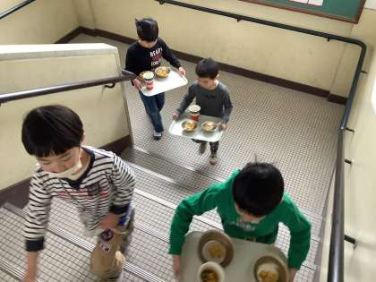トレイに乗せたものをこぼさないように気を付けながら、上手に歩いたり、階段を上ったりすることができました。