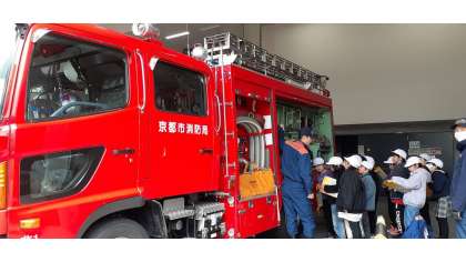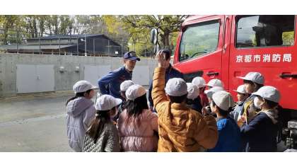 北消防署の見学では、消防車に乗せてもらったり、消防服を見せていただいたりしました。