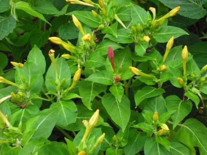 1年生が生活科で種から植えた「夏の花」が咲きはじめています。ちょっと遅いかな。今はオシロイバナとサルビアです。オシロイバナ(白粉花)は別名,ユウゲショウという名があるように,夏の暑い間は,夕方になってから咲き始めます。