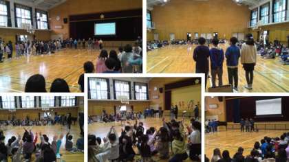 12月に行った創立150周年記念式典に続き、今度は子どもたちが主体となって、おめでとうの会をしました。全校生徒で「ハッピーバースデーの歌」を歌ったり、○×クイズを楽しんだり、150☆MUSIC委員会が考えた自作の歌を歌ったりして、待鳳小学校の150歳のお誕生日会をお祝いしました。