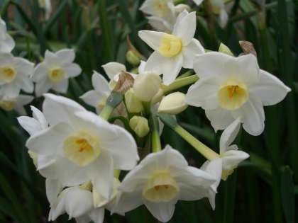 写真のスイセンは1つの茎から8つの花が咲いています。ちょっとびっくりですね。