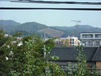 北校舎3階から見える「船形」。昨夜,京都の街を照らした送り火。今日はなにもなかったように,ふだんと同じ様子です。