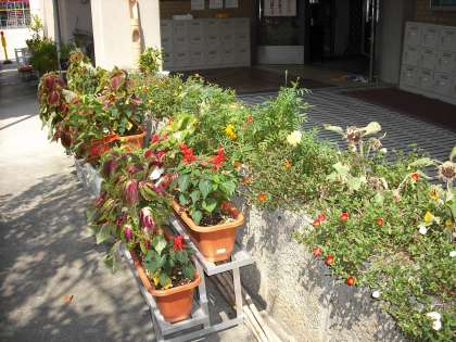 今,ヒメヒマワリ,マリーゴールド,サルビア,ポーチュラカが咲き誇っています。また,コリウスも成長してきています。もう少ししたら,花壇も秋色に変わってくるのでしょうね。