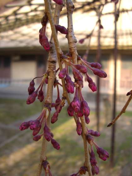 体育館横と運動場西側の枝垂れ桜の様子です。つぼみも膨らんできましたが,開花まではちょと時間がかかりそうです。