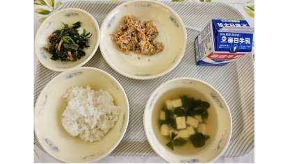 「三つ葉のすまし汁」には、旬の三つ葉を使っています。葉や茎を食べる野菜で、さわやかな香りが特徴です。食感や香りを楽しみながら食べました。
