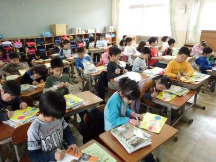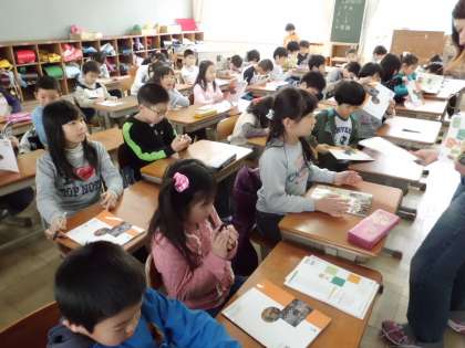 3年で使う新しい教科書が配られました。2年生と違って,社会科や理科が始まります。さあ,がんばるぞ!