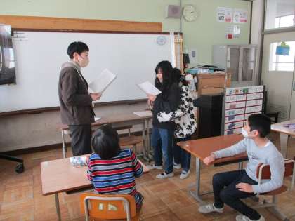 6年生は担任からメッセージと通知票を受け取り、みんなでそのがんばりに拍手を送りました。