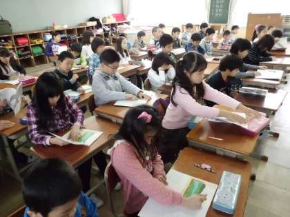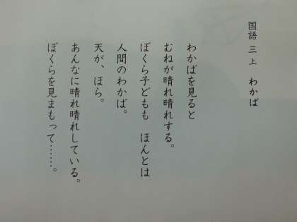 国語の教科書の表紙をめくると,「わかば」という詩が載っています。この詩を読みながら,国語の学習への思いを引き出しています。