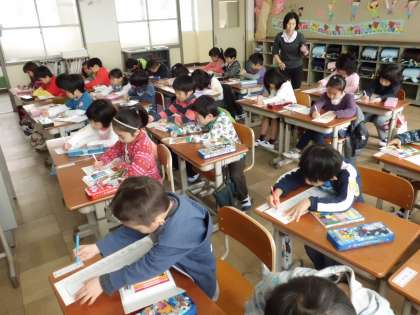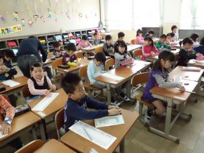 国語の時間にはじめて名前を書きました。ひらがなはこれから勉強していきますが,自分のなまえはきちんと書けなくちゃね。
