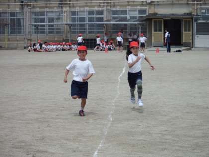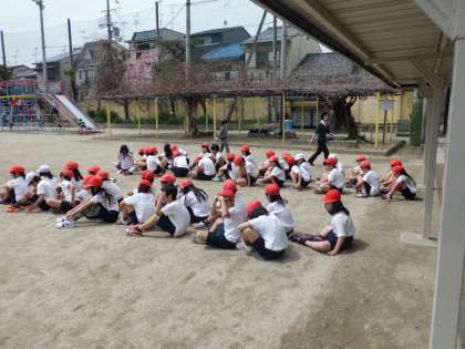 今日は50m走のタイムを計っています。去年よりぐんと早くなってるよね。待鳳小学校ではたてわり行事が多くあります。運動会もその一つです。50mのタイムを計って,グループ分けをします。