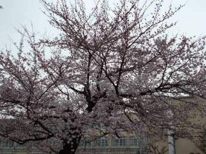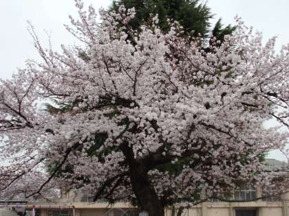 今日の暖かさで,名木100選のソメイヨシノが7分咲きくらいまで咲いてきました。地域の皆様,ぜひご覧ください。