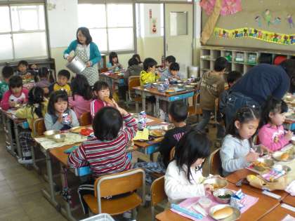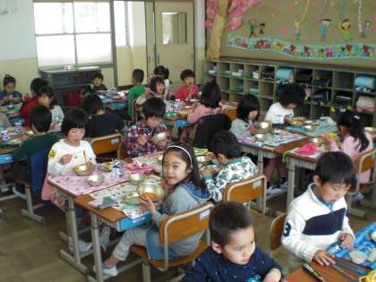 元気な声でいただきま〜す。残さず全部食べられるかな?