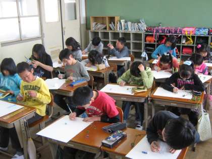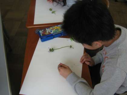 校庭に咲いている,春の花の絵をかきました。学校には知らない花もたくさん咲いていました。じっくり観察して描いたよ。