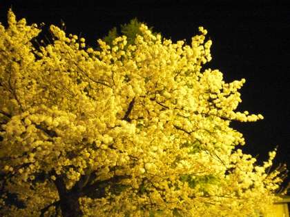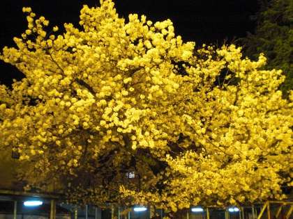 運動場の夜間照明に照らされた桜です。色がうまく出てません。何だかイチョウみたいです。