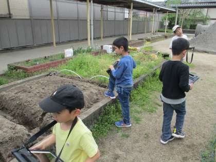 学校内のたくさんの植物や生き物も、元気に動き出しています。