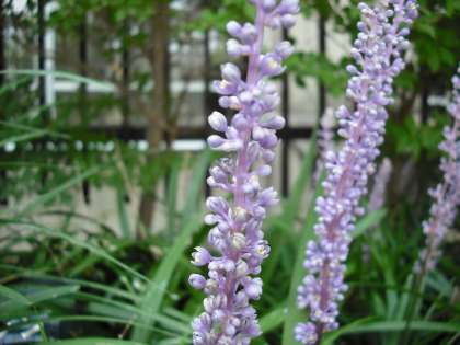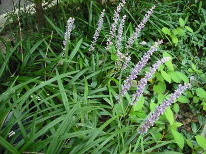 グリーンベルトのヤブランが咲いています。ヤブランはユリ科(最新のAPG植物分類体系ではスズラン科)の植物の一種。別名リリオペ,サマームスカリともいいます。