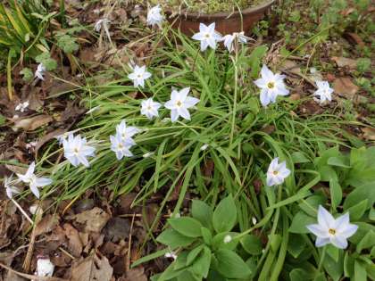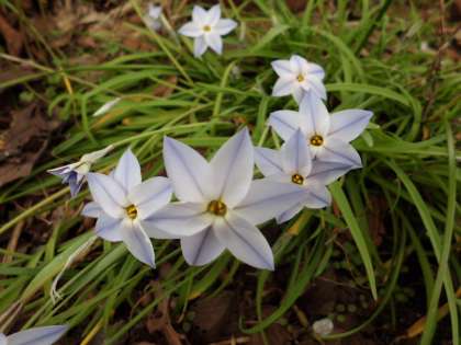 ハナニラが咲きました。清楚で,芯の形と,花ビラの縦の縞模様が綺麗で,沢山生えてきます。嗅ぐと野菜のニラの匂いがすることから名前がつきました。