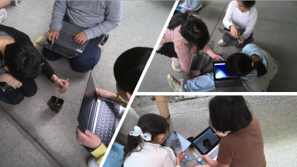 2週間ほど前に植えたヒョウタンの芽が出ました。「分厚い葉が生えている」「高さは、3cmくらい」「あまりにおいはしない」などいろいろな気付きをタブレット上に残していました。