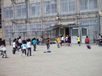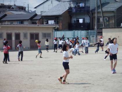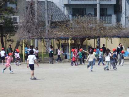 春の陽気に誘われて,運動場もたくさんの子どもたちであふれています。全国学力・学習状況調査に奮闘している6年生も一休みです。