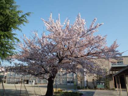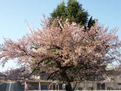 おはようございます。4月18日の名木100選のソメイヨシノです。すいぶん,花びらが散ってきています。今日も風が吹けば桜吹雪が見られることでしょう。