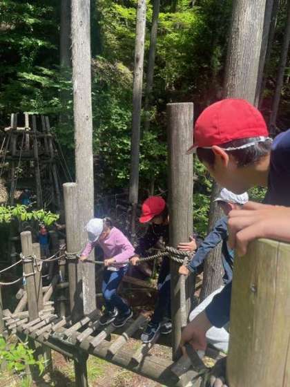 冒険の森(アスレチック)を楽しみました。天気もよく最高です。