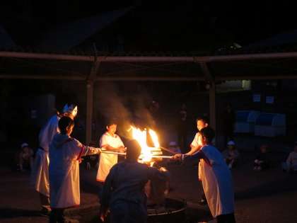 神からいただいた火を木に点火しました。火は木々を一瞬にして燃え上がらせました。もっと燃え上がるためにみんなで歌をうたいました。