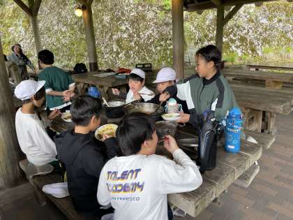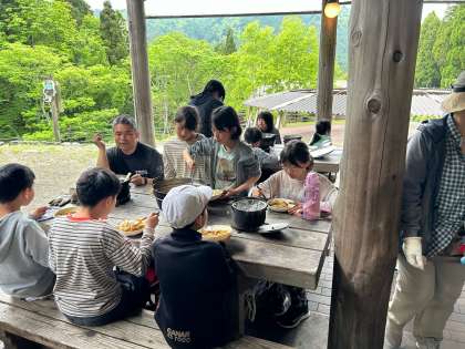 カレーとごはんはどのグループも焦げることなくおいしく炊き上がりました。みんなで感謝の気持ちを込めていただきます。