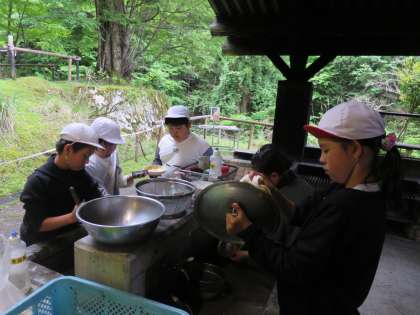 みんで作ったカレーは,最高においしく出来上がりました。「野菜の切り方や焚火のくべ方があじが変わるんだ」と話していました。