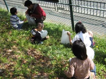 今日はみんなで大宮交通公園へ行きました。目的はよもぎとりです。たくさんのよもぎを見つけて撮ってきました。さて,このよもぎ,何に使われるのかな?????