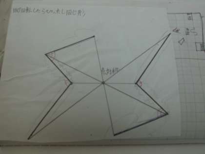 点対称を学習し,ある点の回りに180°回すと,元の形にぴったり重なる図形は点対称(点について対称)であり,その点を対称の中心ということを理解します。