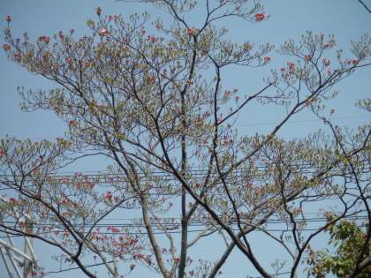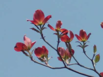 桜が終わるとハナミズキが彩りを添える季節になってきました。ハナミズキの赤い花が開き始めました。