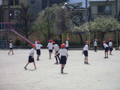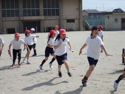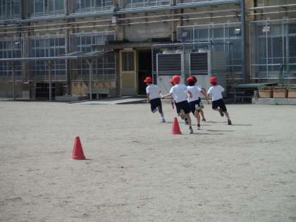 バトンの受け渡しの練習をして,実際にリレーをしました。でも,リレーが始まると,走ることに夢中になり,バトンの練習を忘れてしっまているようです。