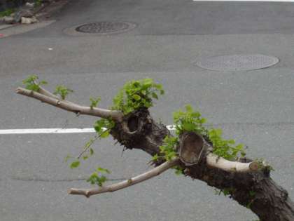 北山通りのカエデやイチョウが芽吹きだしました。剪定をしていたので幹からじかに芽吹いてきました。これからはすぐに繁ってくるでしょう。