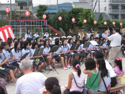 待鳳保育園に続いては,旭丘中学校吹奏楽部の皆さんです。待鳳小学校の卒業生もたくさん入部しています。さすが中学生という息の合った演奏を聴かせていただきました。