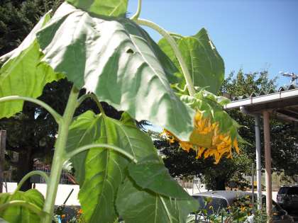 花の終わりとともに,種が膨らんできています。どれくらいの種がつまっているのでしょう?重くなって垂れ下がってきています。