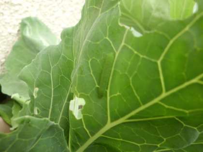 3年生が理科でチョウの観察をします。キャベツの苗にあおむしがいました。子どもたちは,もう見つけてるかな?