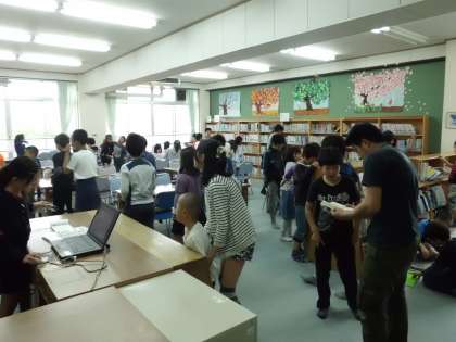 今日は雨がずっと降り続いています。そのせいもあってか,図書室は大盛況です。定例会をしていた図書ボランティアさんも会議室へ避難です。
