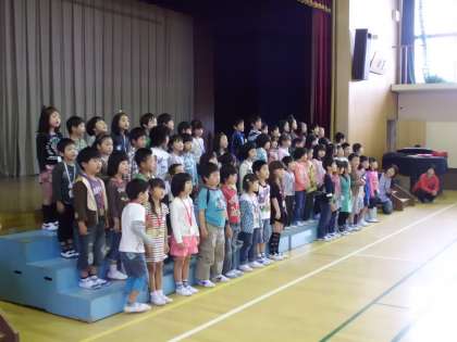 最後に,迎える会を開いてくれたお兄さん,お姉さんに言葉と「さんぽ」の合唱でお礼をしました。みんな,はきはきと話ができ,歌も元気よく歌えました。今日から待鳳小学校児童会に入りました。
