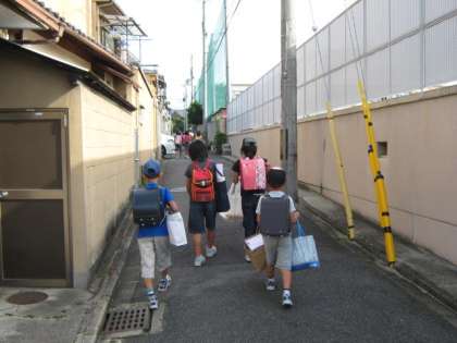 夏休みも終わり,子どもたちは夏休みの工作を入れた大きな袋を下げて登校してきました。今日からさっそく給食も始まります。運動会に向けての練習も始まります。新型インフルエンザの感染予防に気をつけて,元気に学校生活をすごしましょう。