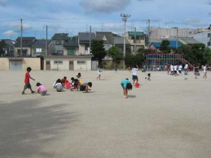 朝会に引き続き,たて割りグループで草引き・石拾いをしました。毎年,運動会に向けて休み明けのこの日に実施しています。