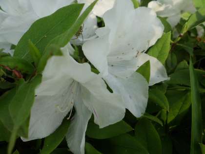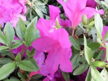 3色のツツジが咲いてきています。手入れをきちんとすれば(剪定・防虫),もっとたくさんの花を咲かせるのですが…。