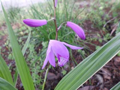 シランの花が咲き始めました。カタカナやひらがなで表記すると変な感じですが,漢字で書くと要するに「紫蘭」で,紫色の花を咲かせる蘭と言うことです。