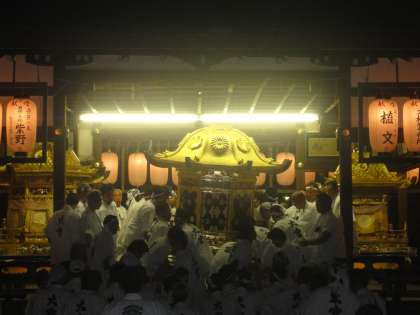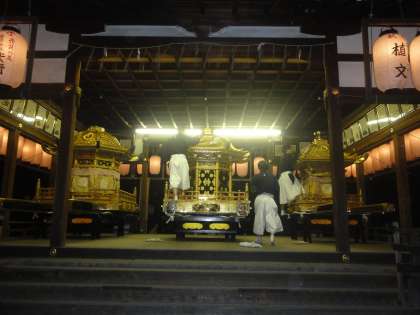 今宮神社に帰り,枠提灯が外され拝殿に神輿が収まりました。今宮祭は地域の大切なお祭りです。これから先もずっと子どもたちによって受け継がれていかなければなりません。